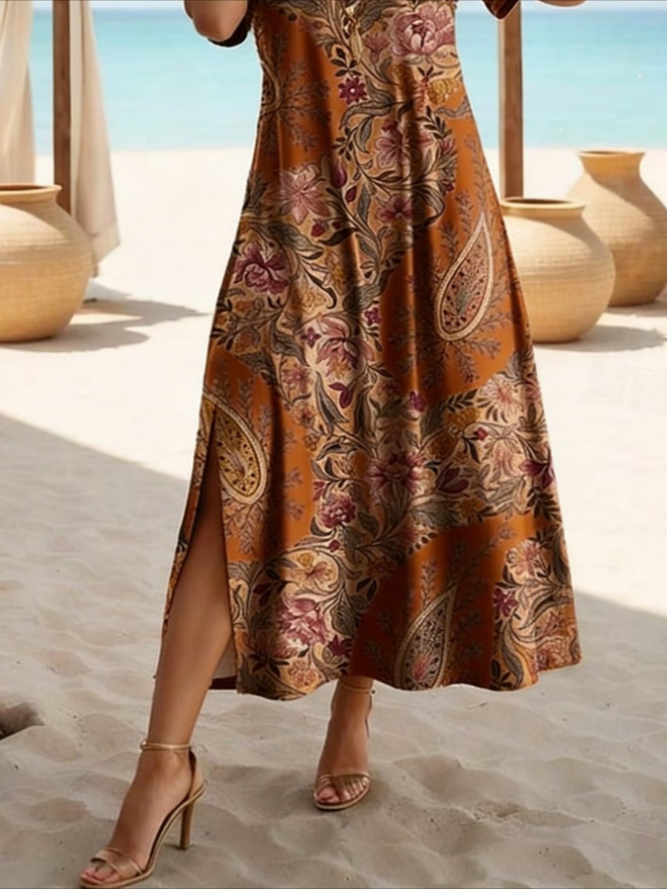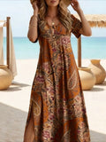 Short Sleeve Summer Floral Printing Crew Neck Daily Going Out Casual Maxi H-Line Shift Maxi Dress