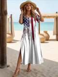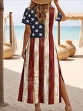 Independence Day Patriotic Loose Fit Graphic Geometric Flag Short Sleeve Crewneck Maxi Dress