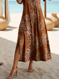 Sale Vintage Ethnic Floral Digital Print Long Sleeve Dress