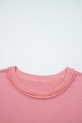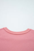 Orchid Mist Solid Color Raw Seam Patchwork Ribbed Drop Shoulder Sweatshirt
