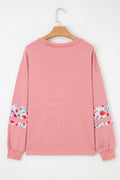 Peach Blossom Floral Applique Baggy Pullover Sweatshirt
