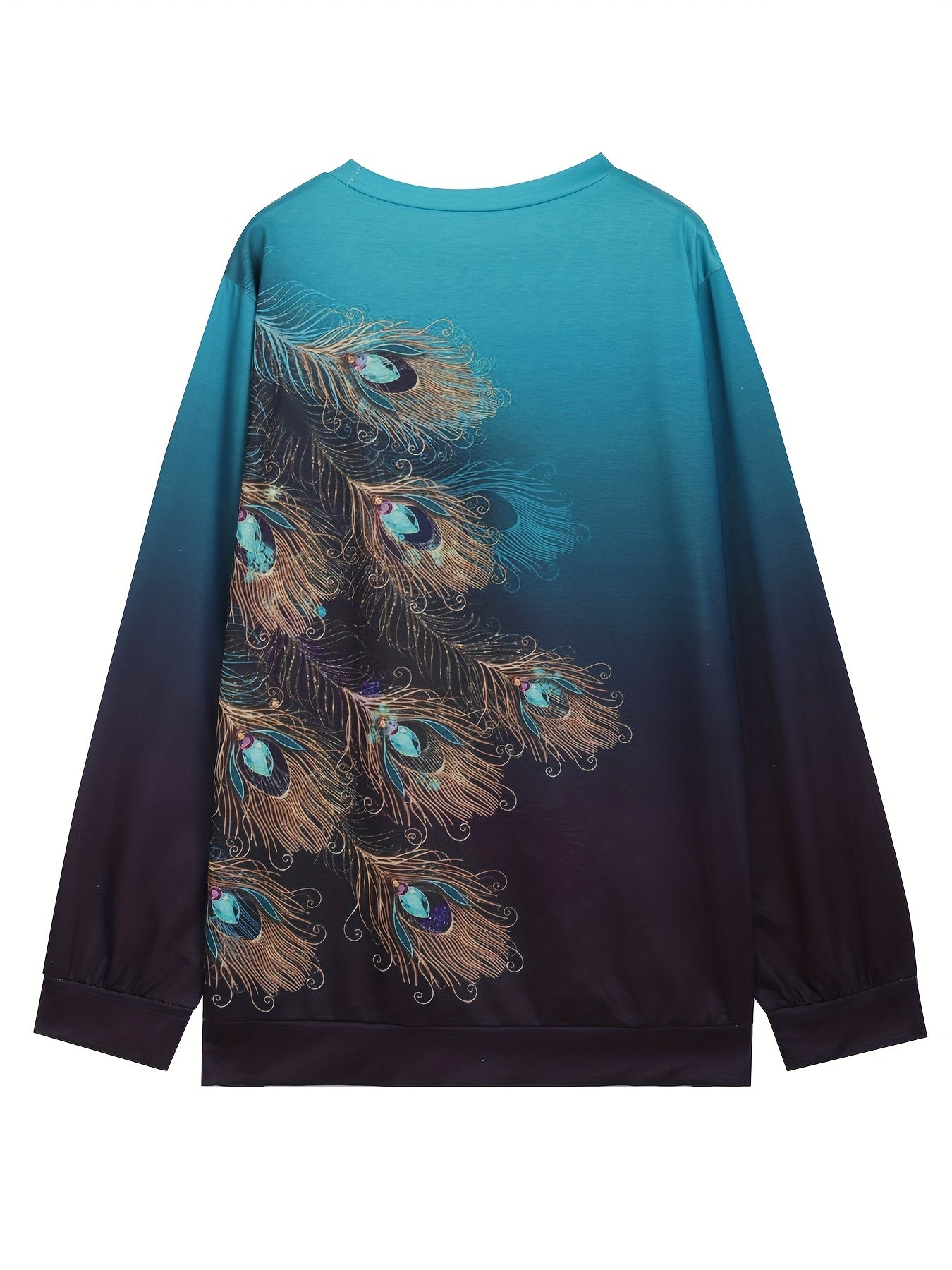 Peacock Feather Print Long Sleeve Round Neck Sweatshirt
