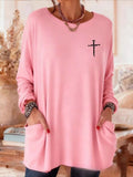 Text Printing Crew Neck Floral Long Sleeve Sweater Hoodie