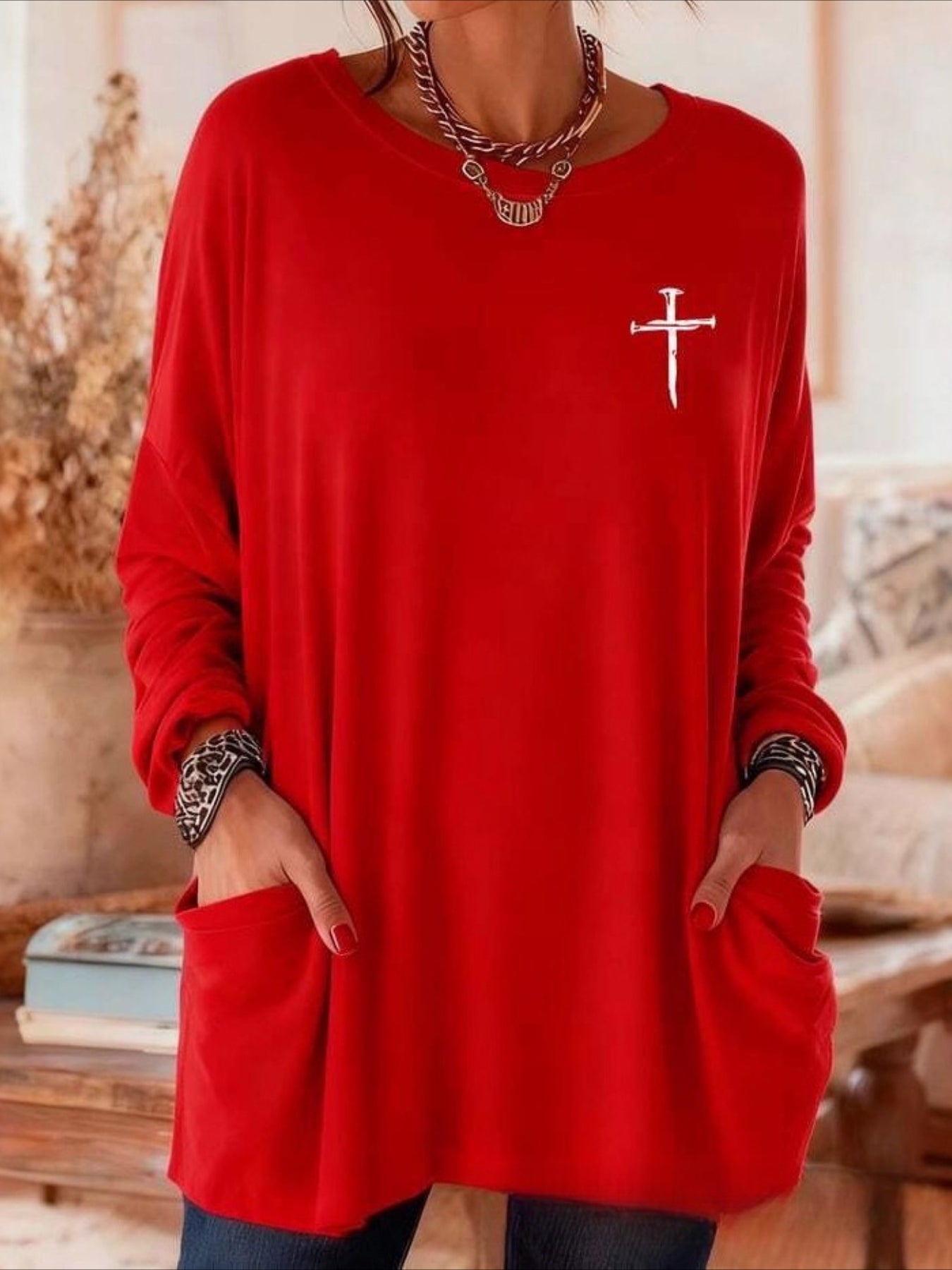 Sale Casual Floral Art Print Crew Neck Long Sleeve T-shirt