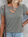 Sale Petal Sleeve Loose T-Shirt, Short Sleeve Casual Top