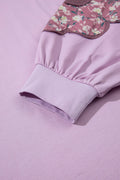 Purple Leopard Striped Patchwork Plus Size Loose Sweatshirt