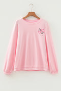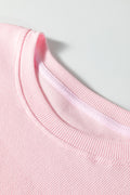 Pink 3d Ribbed XOXO Heart Embroidered Drop Shoulder Sweatshirt