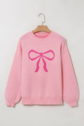 Pink Bow Graphic Drop Shoulder Round Neck Sweater