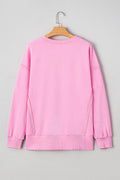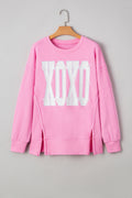 Pink Bow Sequin XOXO Letter Graphic Exposed Seam Baggy Sweatshirt