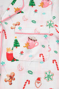 Pink Christmas Spirit Cute Holiday Print Short Sleeve Shirt and Pants 2pcs Pajama Set