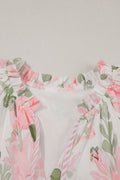 Pink Floral Contrast Edge Layered Short Sleeve Mini Dress
