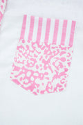 Brown Wild Leopard Print Contrast Striped Frilled Trim Chic Shirt