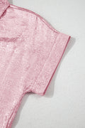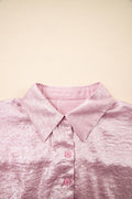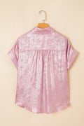 Sale Pink Metallic Sheen Short Sleeve Buttoned Front Casual Shirt