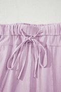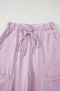 Pink Mineral Wash Exposed Seam Drawstring High Waist Wide Leg Cargo Pants