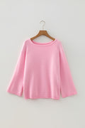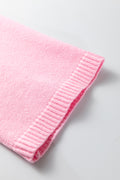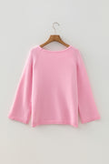 Pink Solid Color Knit Loose Bracelet Sleeve Dolman Sweater