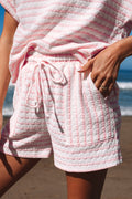 Sale Pink Stripe Knitted Short Sleeve Top and Drawstring Shorts Set