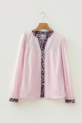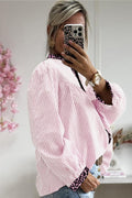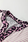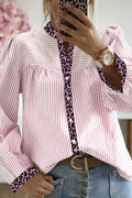 Pink Stripe Leopard Patchwork Long Sleeve Shirt