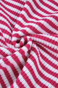 Pink Stripe Zip up Collar Drop Shoulder Sweater