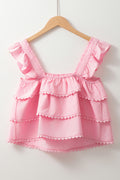 Pink Tiered Heart Trim Square Neck Flutter Top