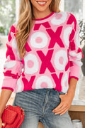Pink XOXO Pattern Drop Shoulder Crewneck Valentines Sweater