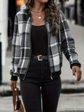 Plaid Print Bomber Jacket, Casual Zip Up Long Sleeve Outerwear