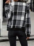 Sale Plaid Print Bomber Jacket, Casual Zip Up Long Sleeve Outerwear