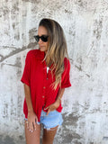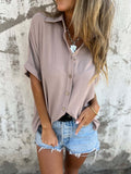 Sale Women's Casual Notch Neck Blouse with Split Sleeves