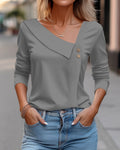 Sale Plain Button Long Sleeve Daily Weekend Vintage Fashion Basic V Neck T-Shirt