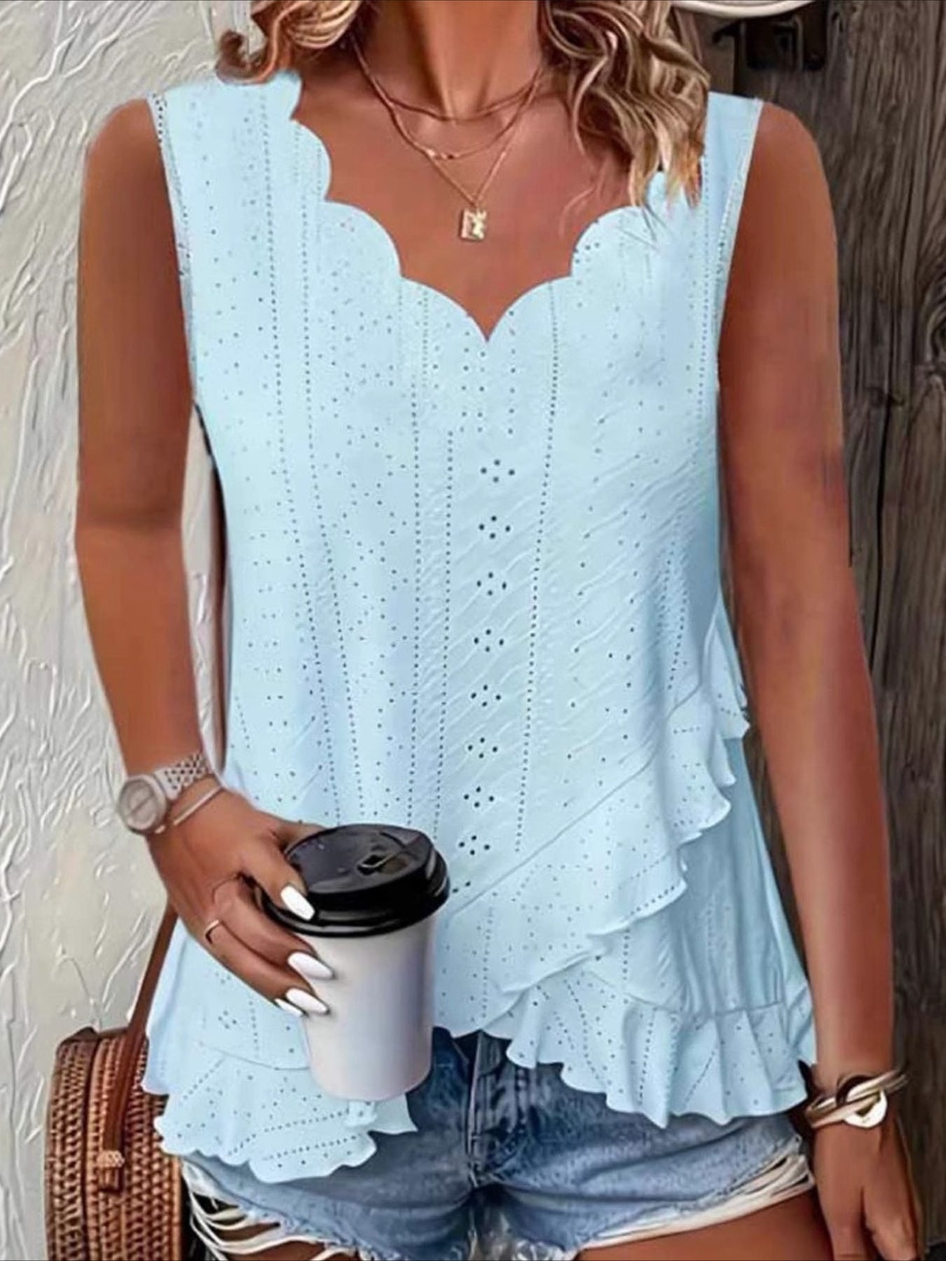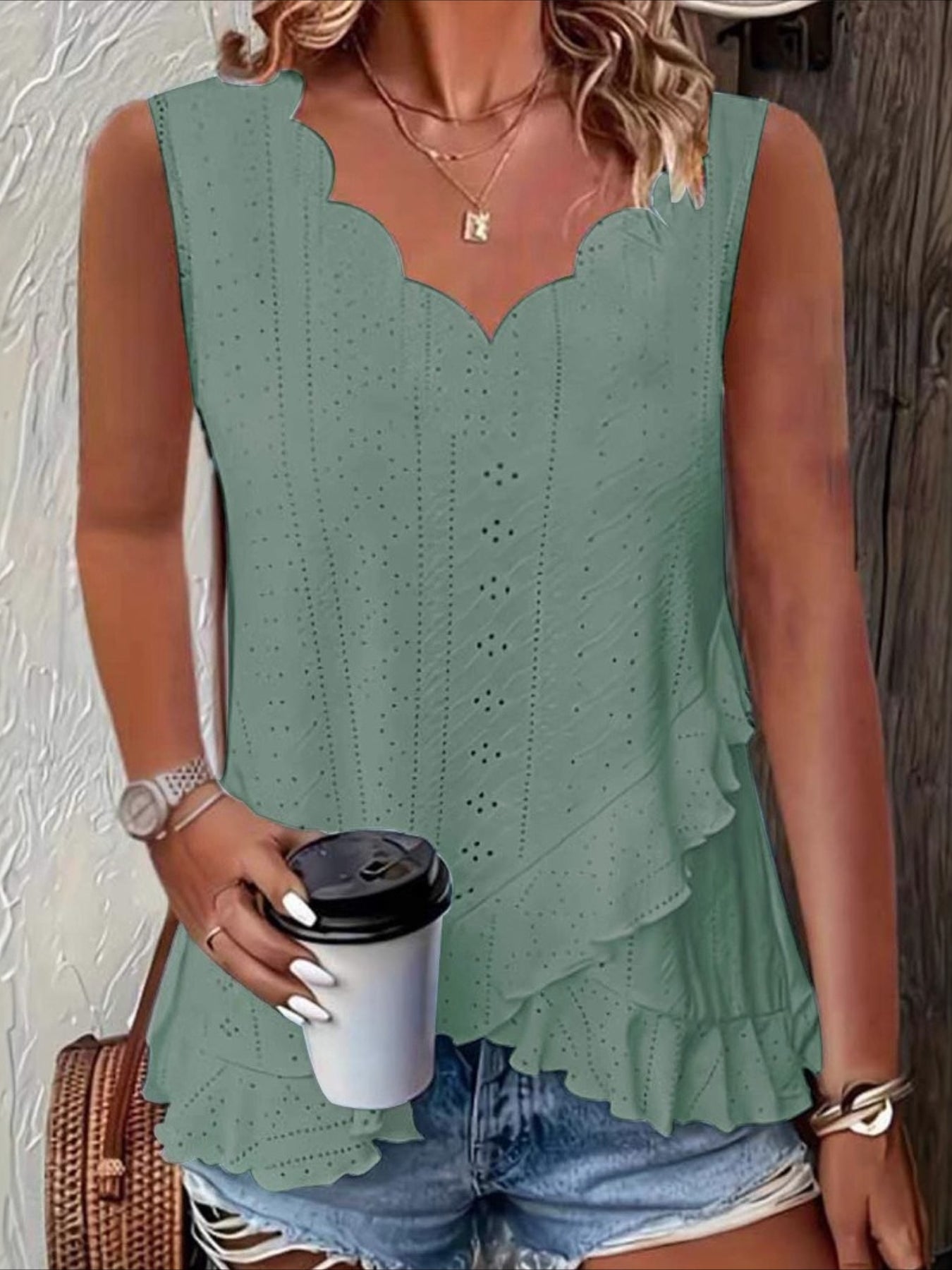 Sale Plain Daily Casual Sleeveless V Neck Regular Tank Top