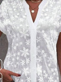 Plain Lace Buttons Street Daily Basic Modern V Neck Solid Color Shirt