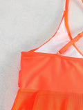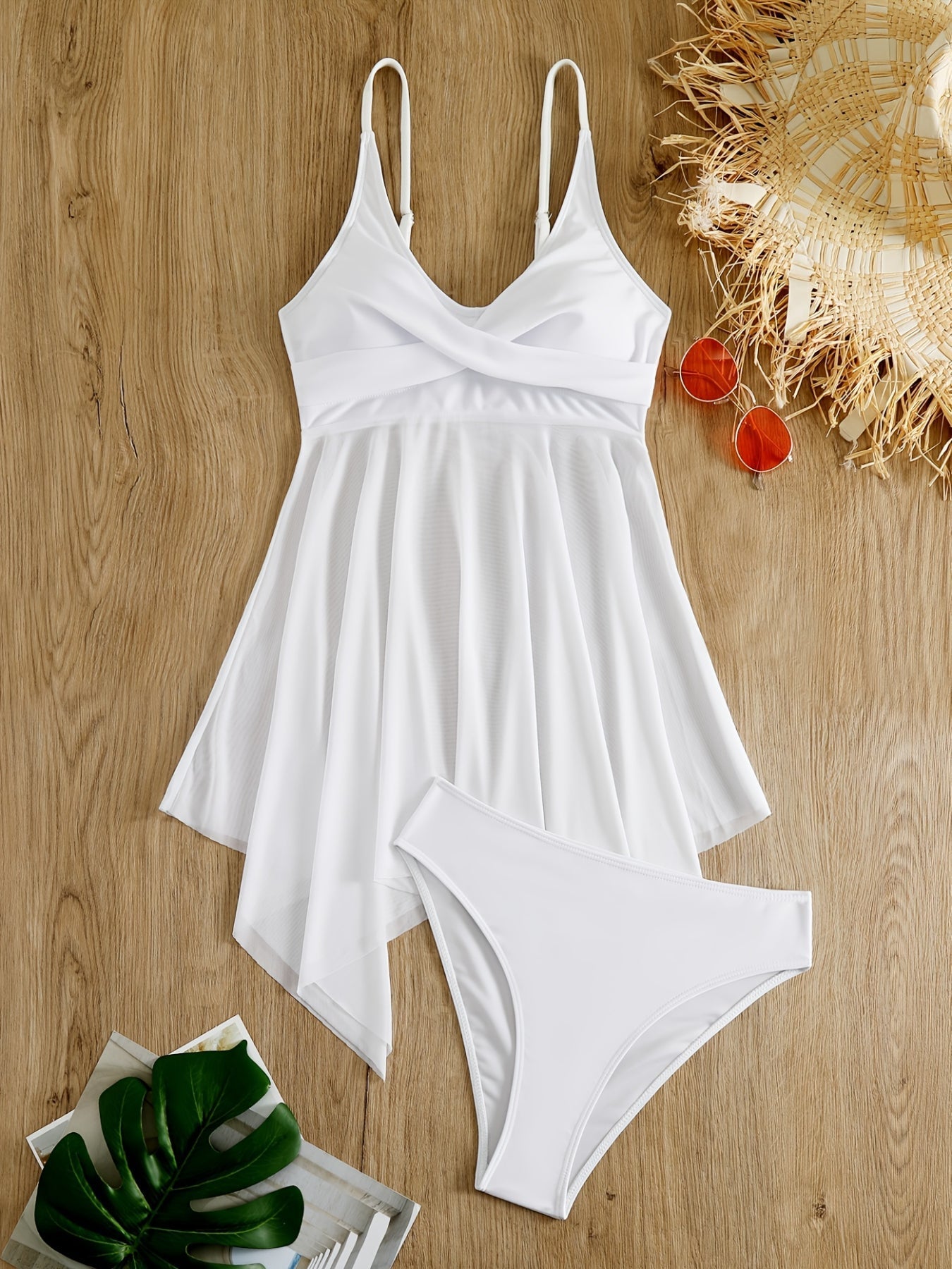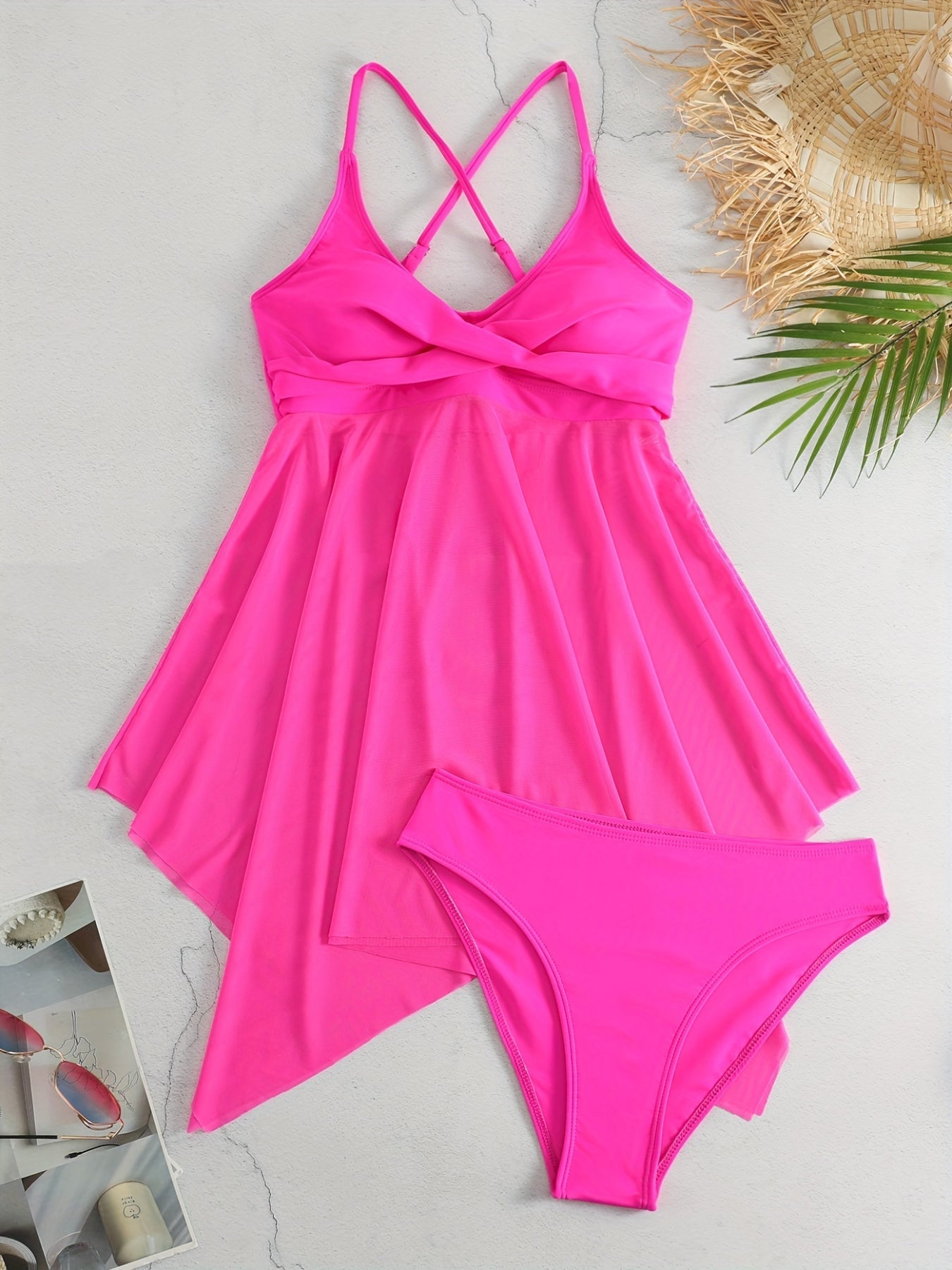 Sale Plain Mesh Contrast Criss Cross Skirted 2 Piece Set Bikini, Scoop Neck Spaghetti Strap Twist Solid Color Swimsuit For Beach Pool Bathing