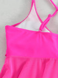 Plain Mesh Contrast Criss Cross Skirted 2 Piece Set Bikini, Scoop Neck Spaghetti Strap Twist Solid Color Swimsuit For Beach Pool Bathing