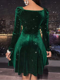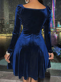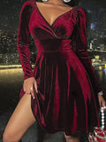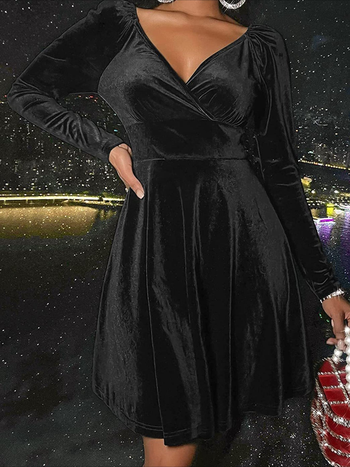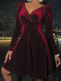 Long Sleeve Spring/Fall Golden Plain Split Joint Mini A-Line Fit & Flare Dress