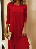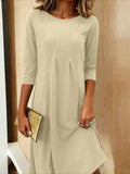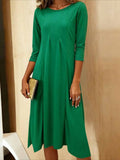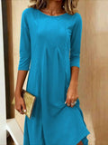 Plain Three Quarter Sleeve Spring/Fall Split Joint Crew Neck Daily Casual Midi Tunic A-Line Dress