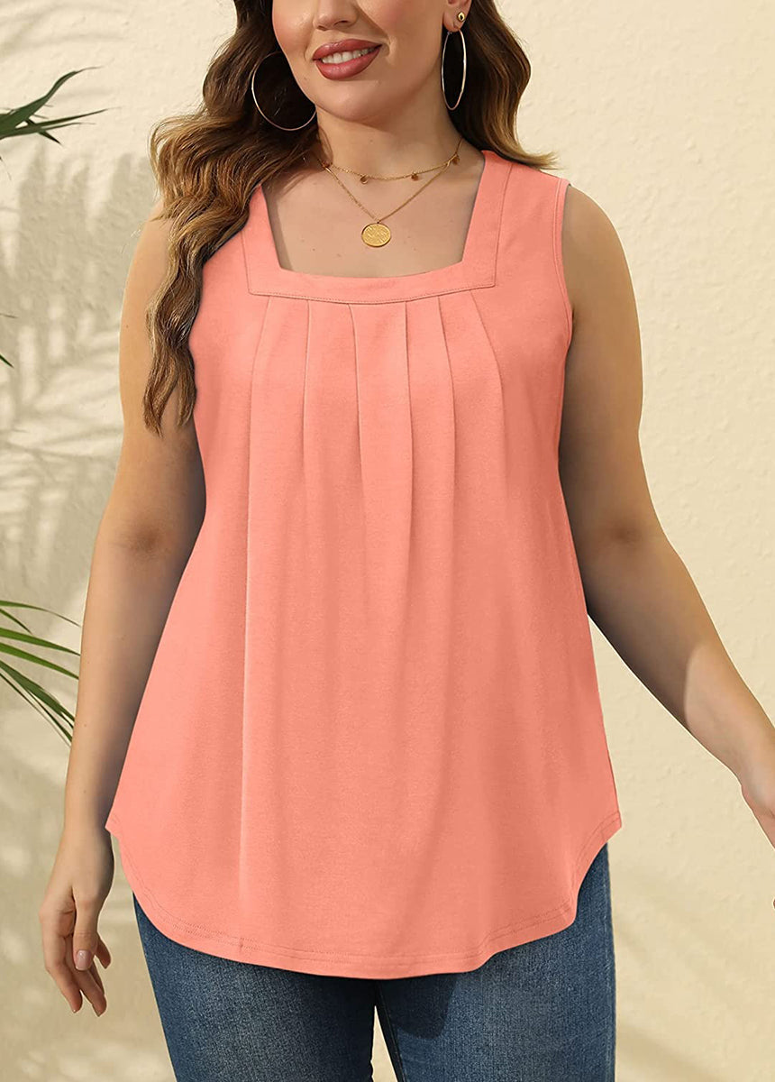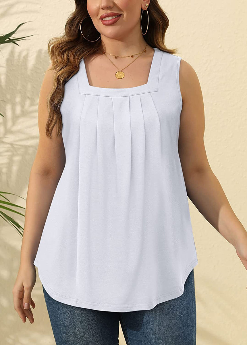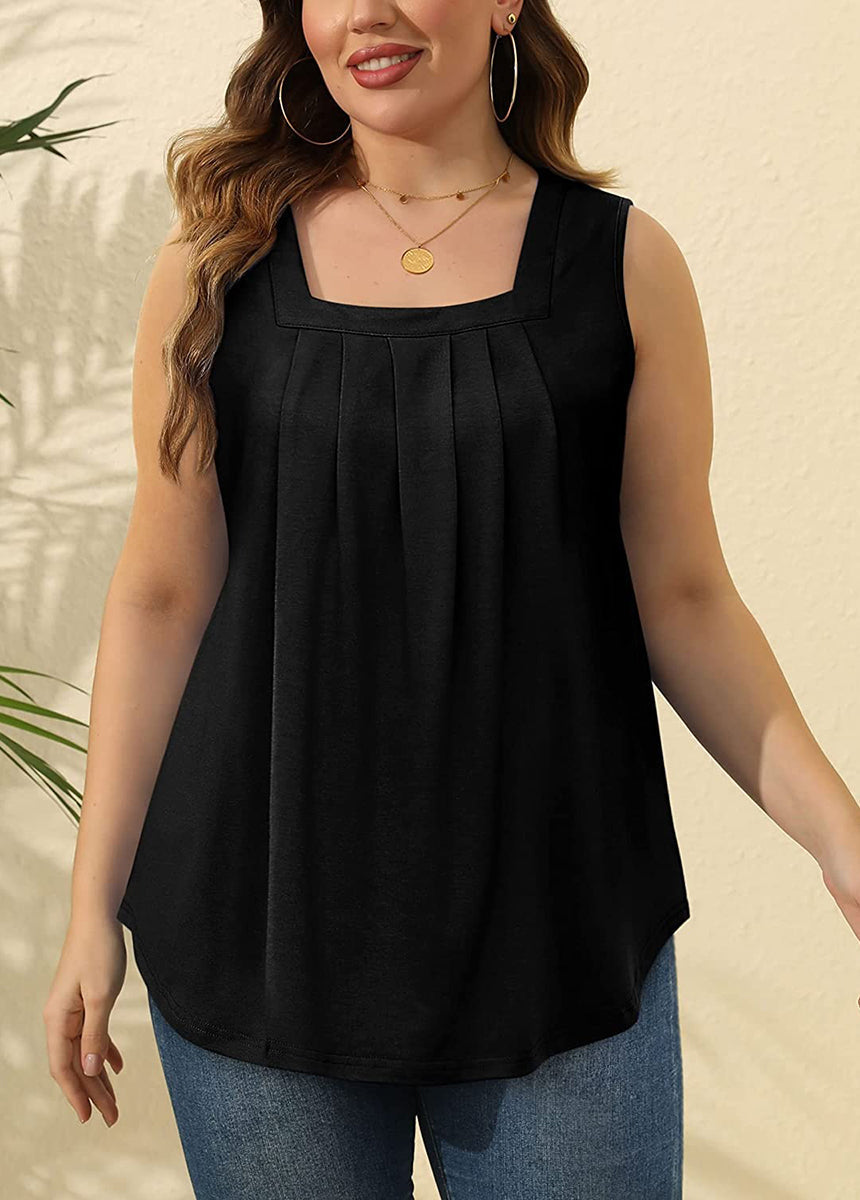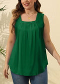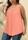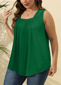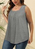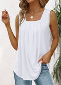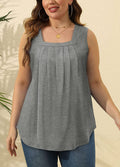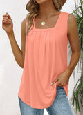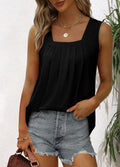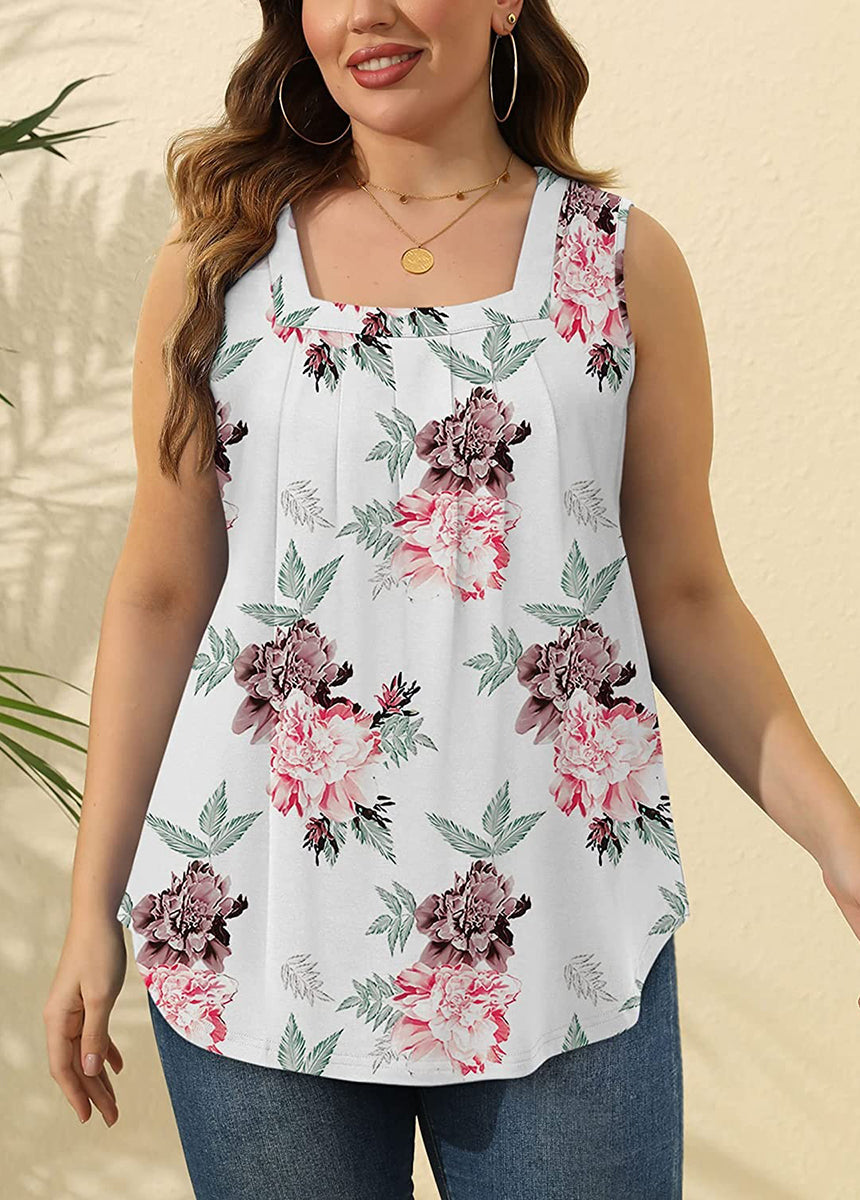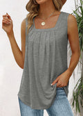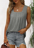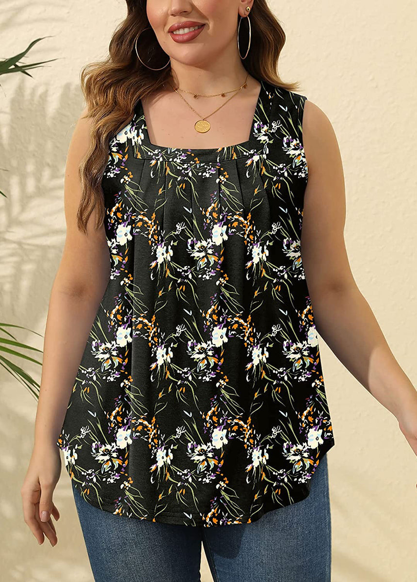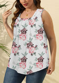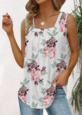 Pleated Square Neck Printed Sleeveless Vest Top