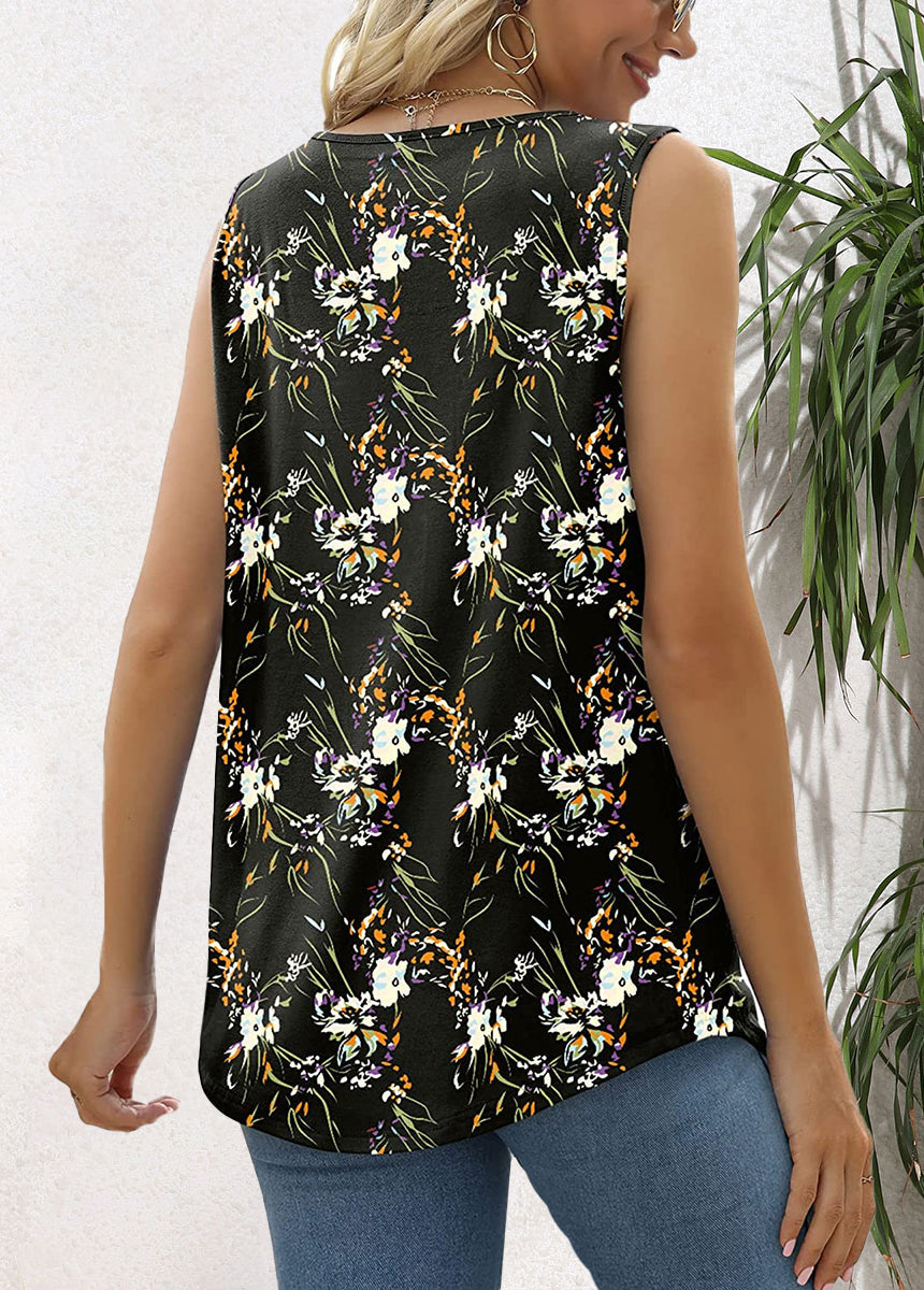 Sale Vintage Floral Print Vest, Casual V Neck Sleeveless Chain Tank Tops