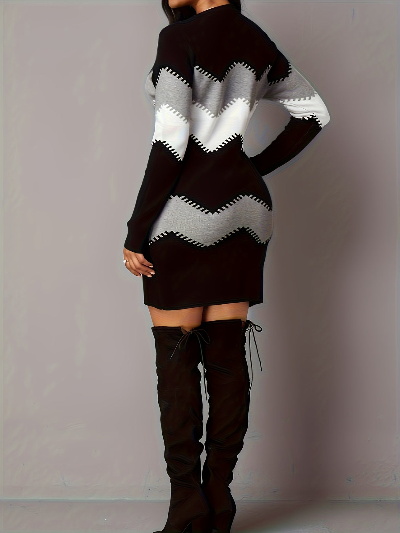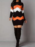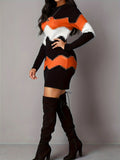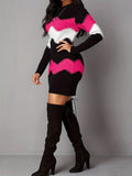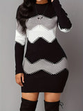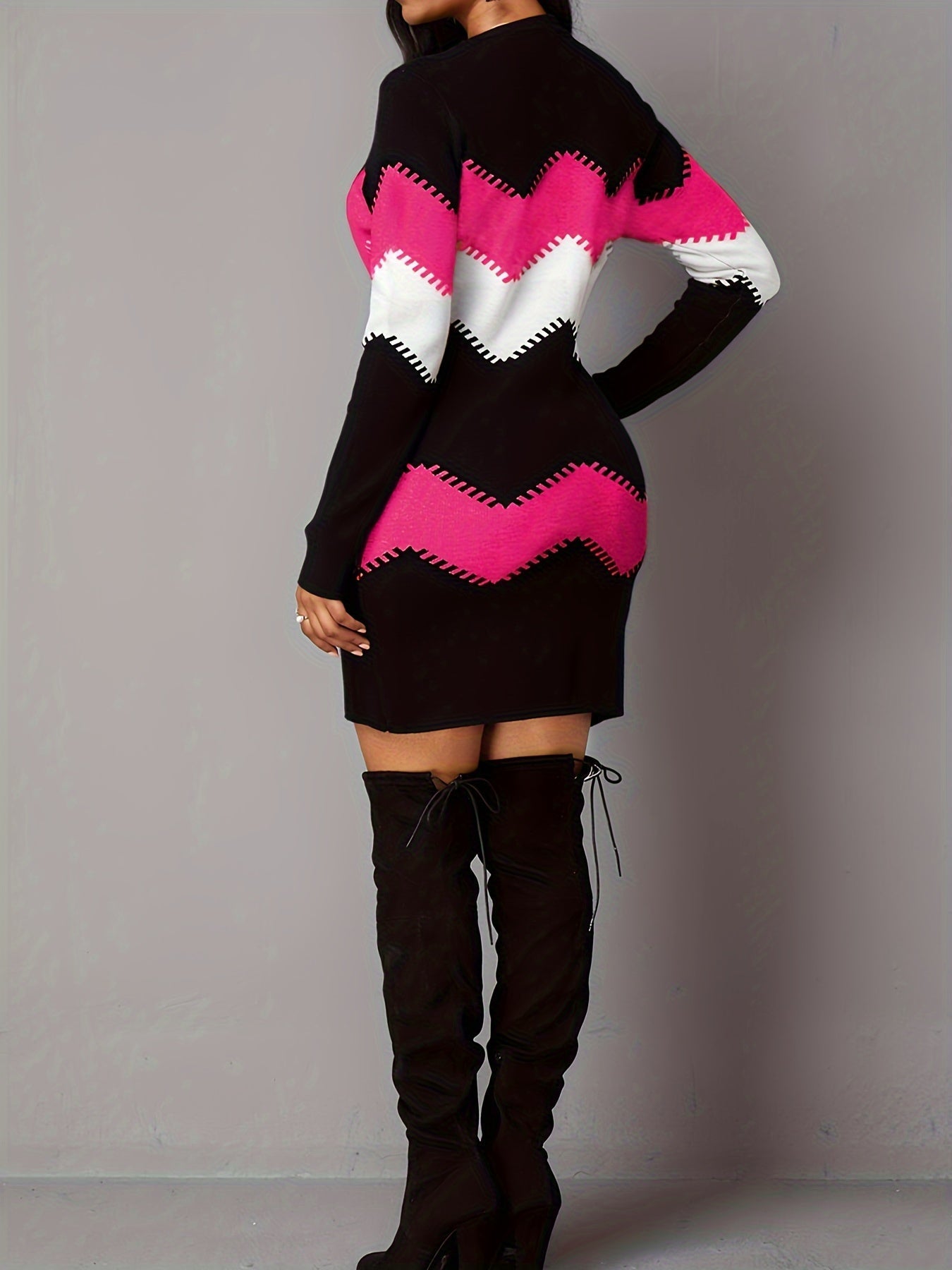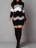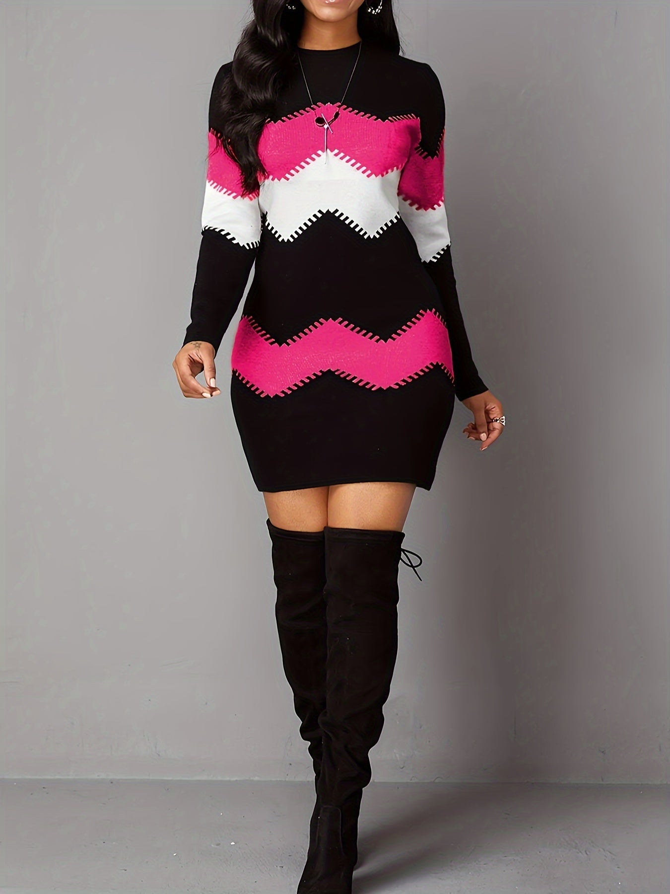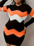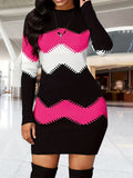 Casual Dress, Women's Colorblock Stripe Print Long Sleeve Round Neck Dress