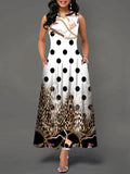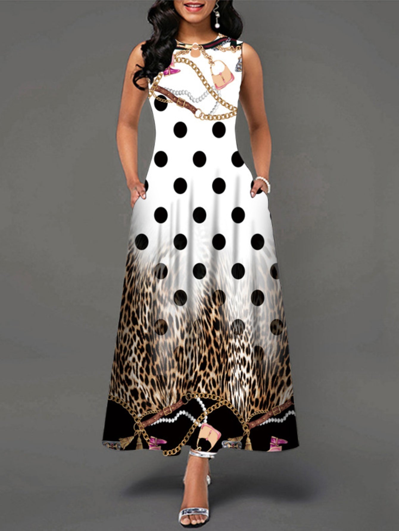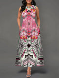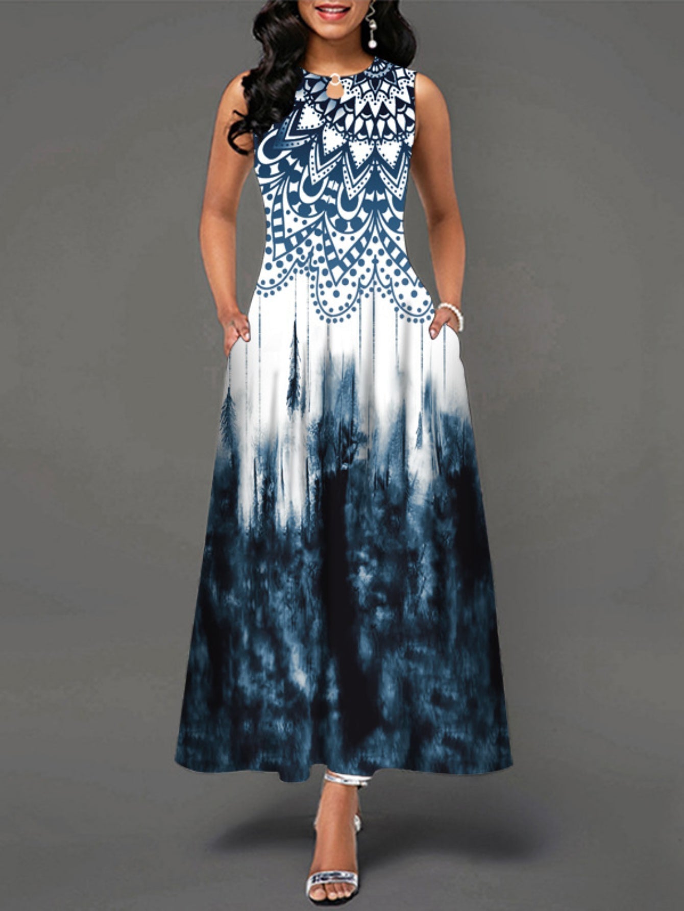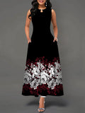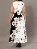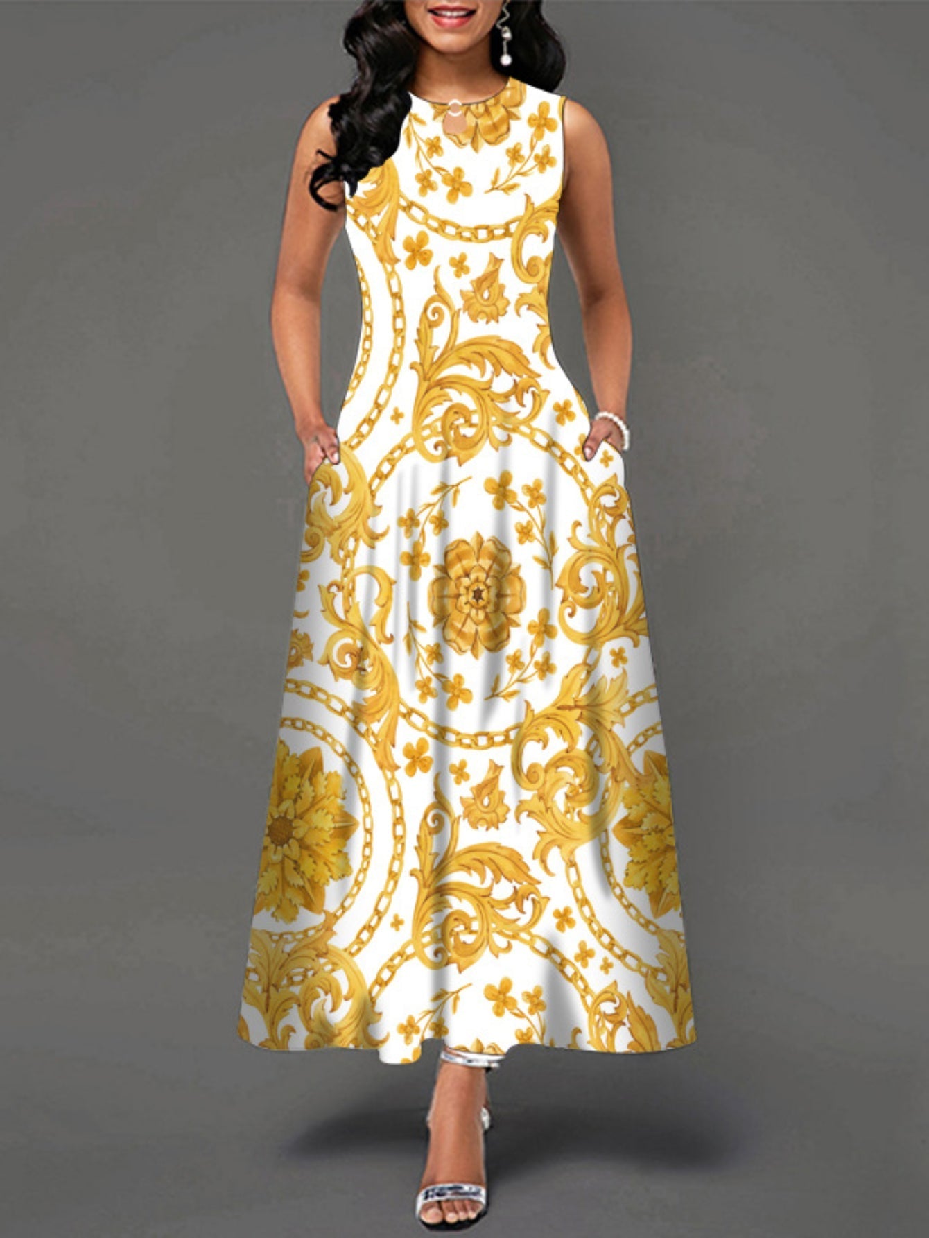 Sale Casual Tank Dress, Colorblock Floral Print Cut Out Round Neck Medium Stretch Maxi Tank Dress