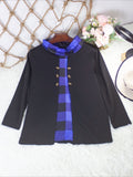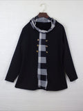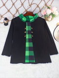 Christmas Tree Print Button Decor T-shirt, Casual Long Sleeve Plaid Print T-shirt