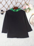 Black Rhinestone Sheer Mesh Slim Fit Long Sleeve Top