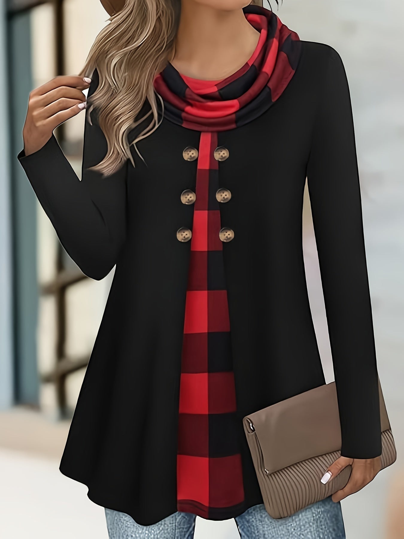 Chic 2-in-1 Plaid Print T-Shirt Top
