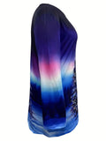 Sale Color Block Crew Neck T-shirt, Casual Long Sleeve Top