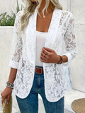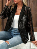 Sale Floral Pattern Open Front Blazer, Elegant Long Sleeve Outerwear
