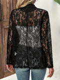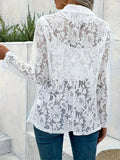 Sale Lace Splicing Swiss Dot V-neck Blouse, Elegant Long Sleeve Blouse Top
