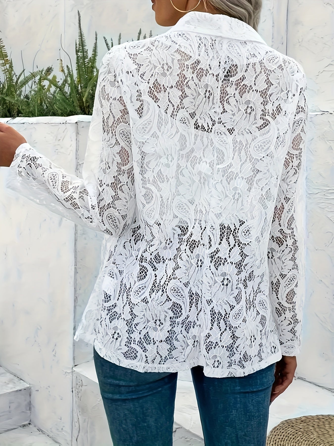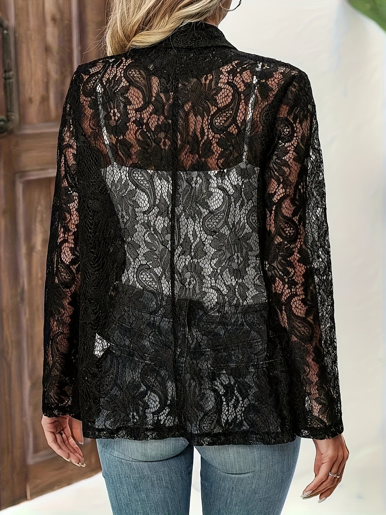 Floral Pattern Open Front Blazer, Elegant Long Sleeve Outerwear