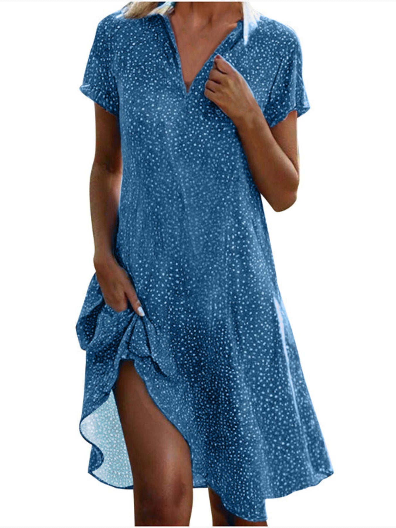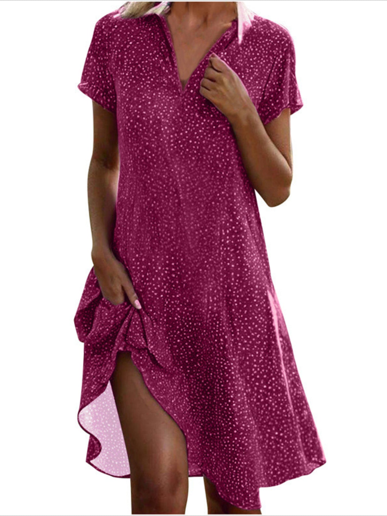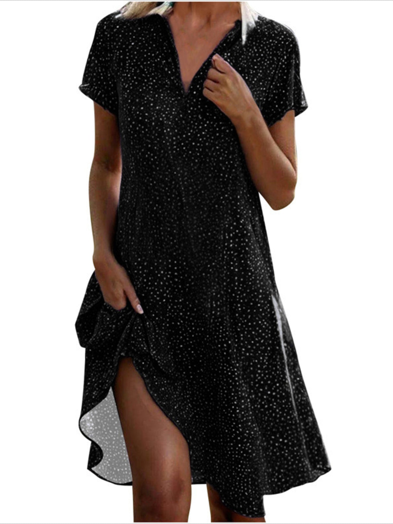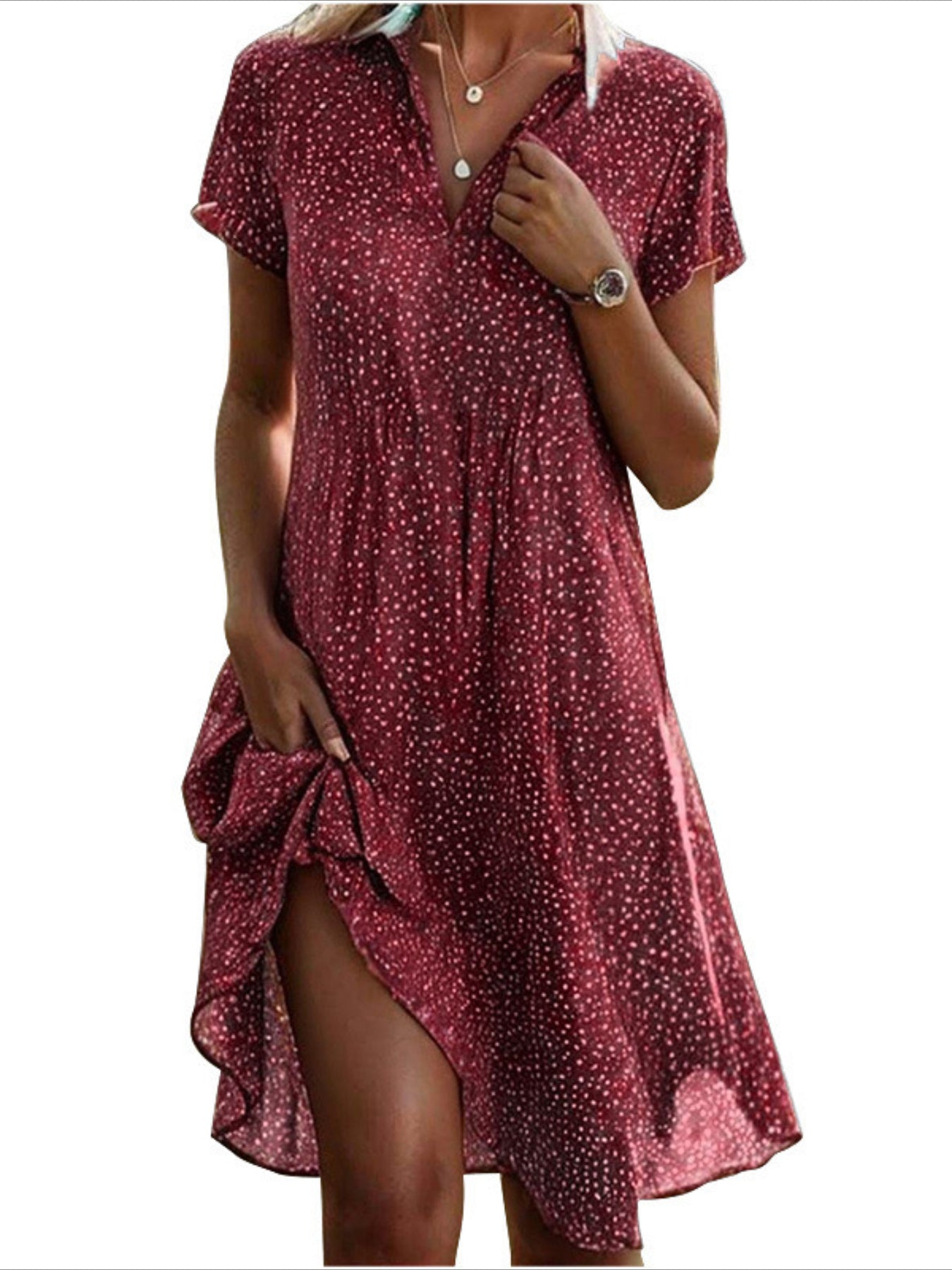 Sale Polka Dot Print Collared Dress, Casual Short Sleeve Dress