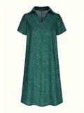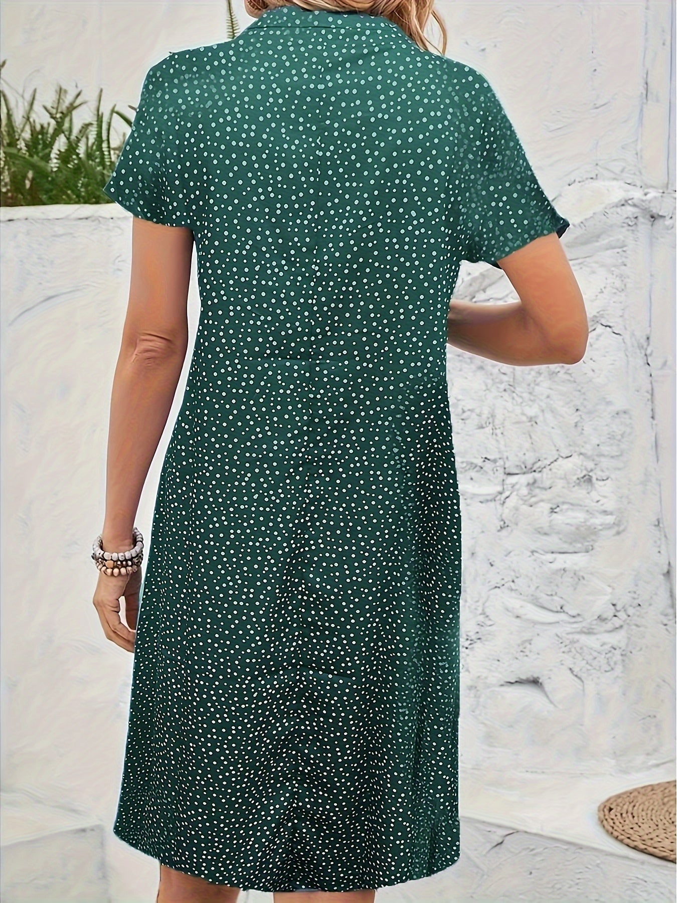 Polka Dot Print Collared Dress, Casual Short Sleeve Dress