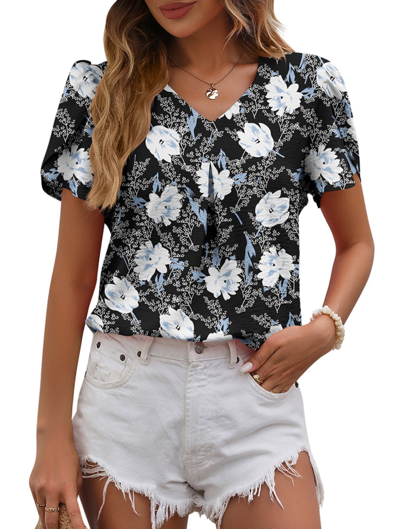 Sale Simple Solid Top, Casual V Neck Short Sleeve Top