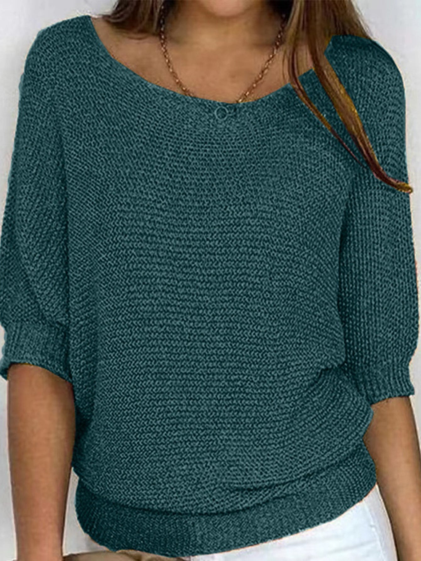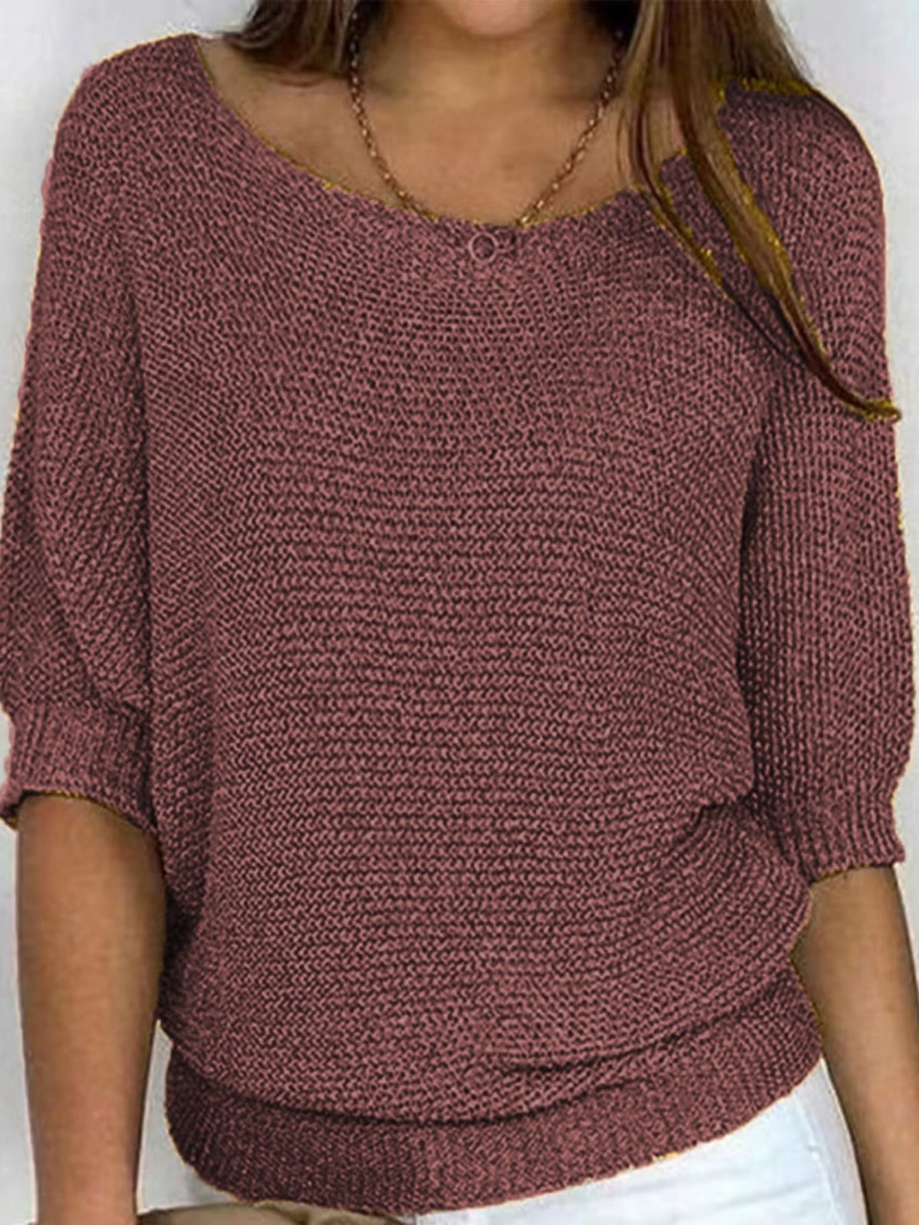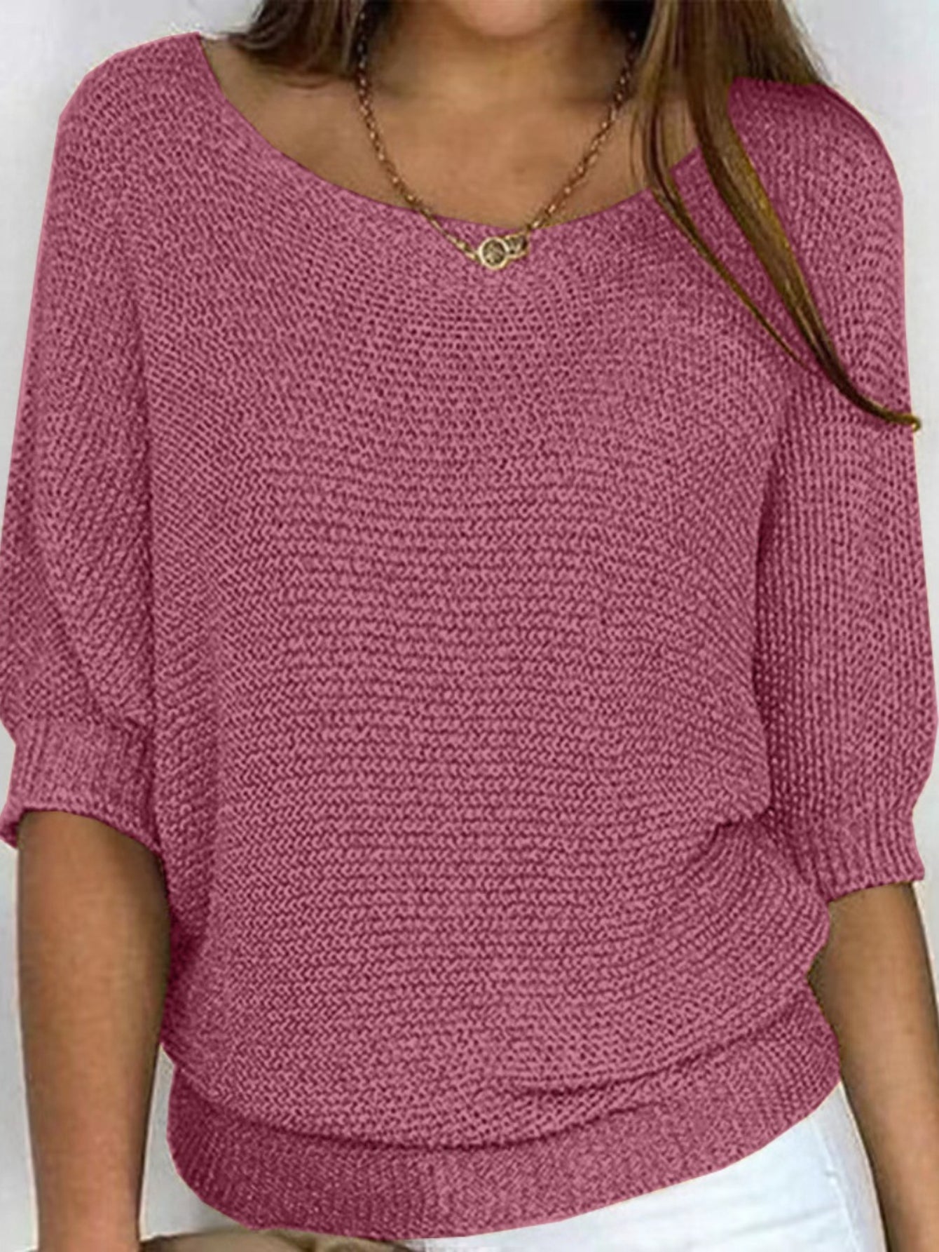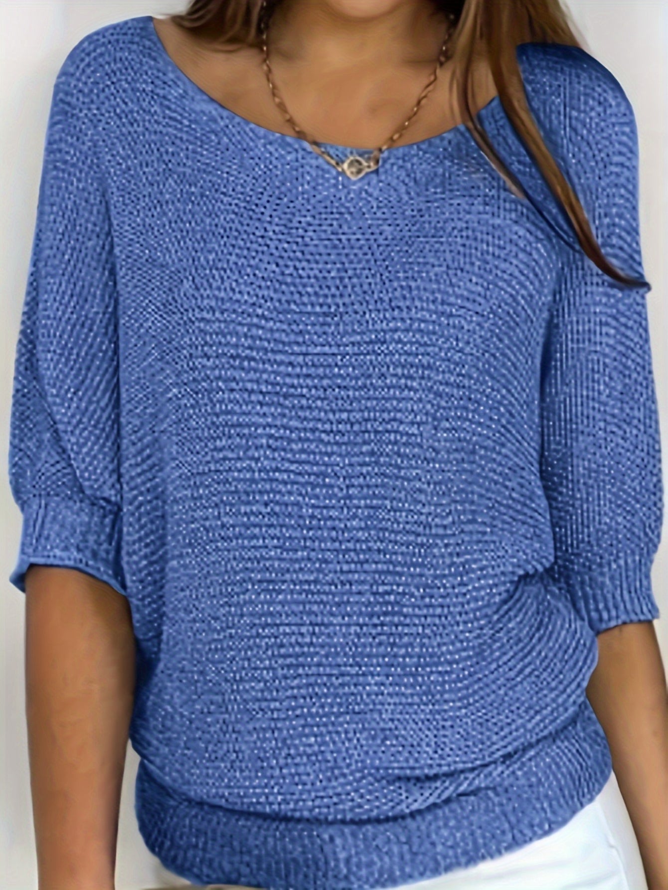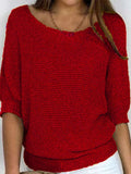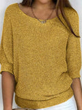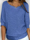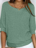 Sale Solid Simple Knit Sweater, Casual Crew Neck 3/4 Sleeve Sweater
