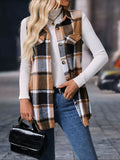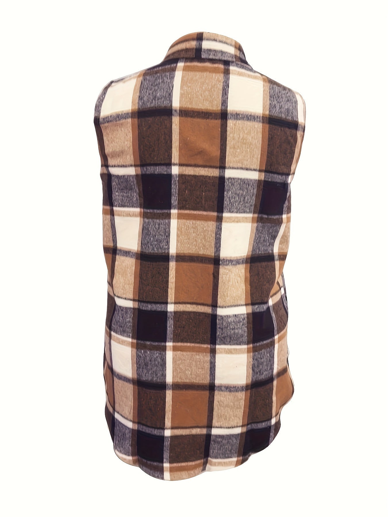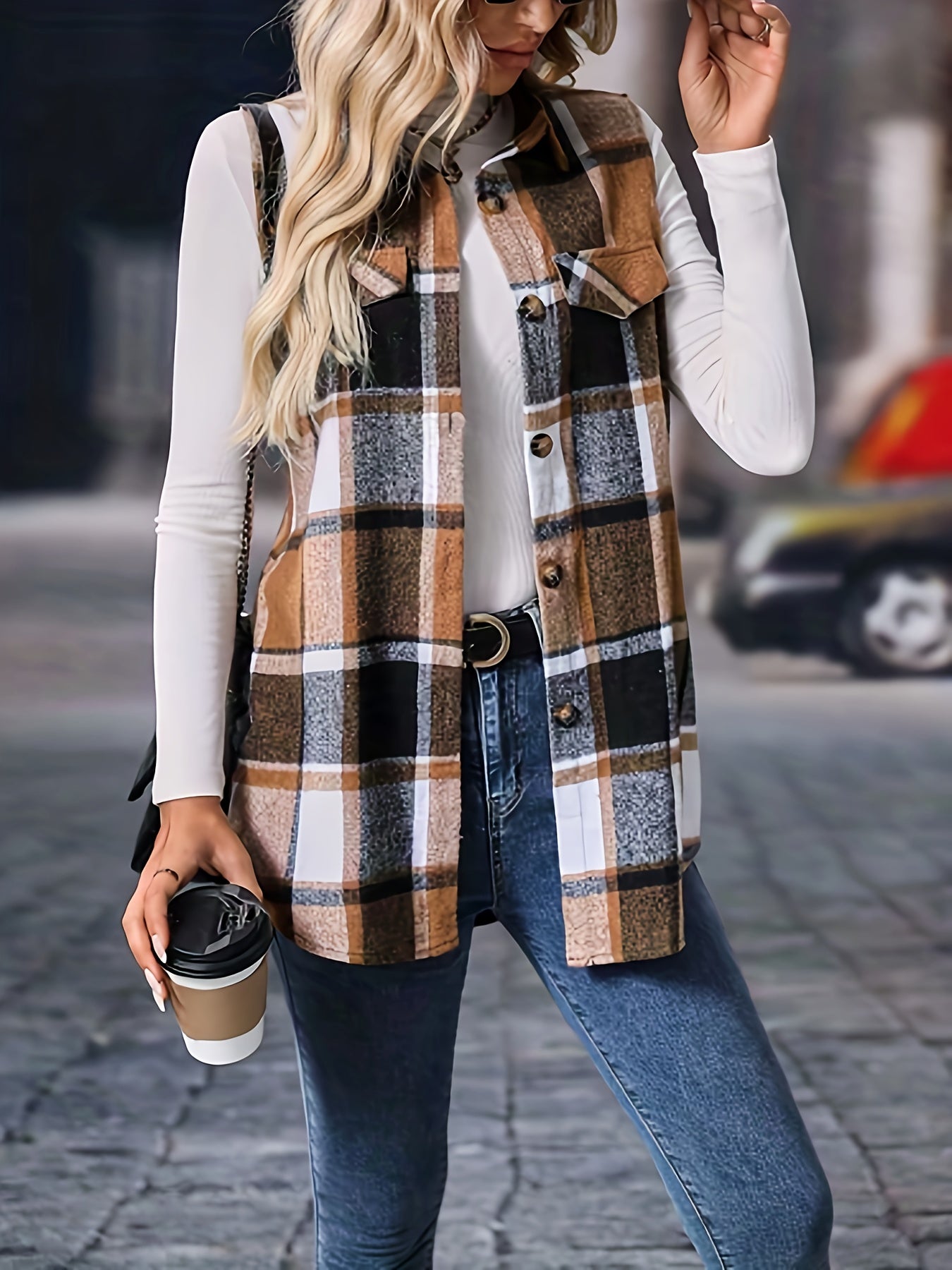 Sale Women's Casual Plaid Print Tunic Vest Coat
